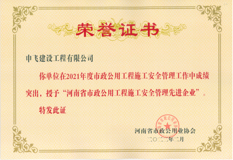 - [04-12]申飛建工再獲“省先進施工企業”、 “市政金杯獎”等多項榮譽